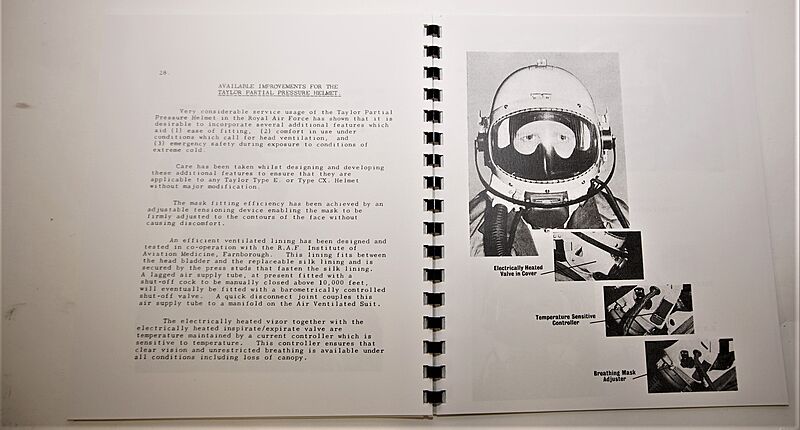 RAF Type E Partial Pressure Helmet Instruction Manual The iconic Taylor E Partial Pressure Helmet was developed by Baxter Woodhouse and Taylor ltd in the 1950's and saw limited service with the RAF in the 1960's against Stores reference 22C/2093-2105. These helmets were hugely expensive to manufacture and saw very limited use and as such examples hardly ever appear on the collectors market today. I have been lucky enough to own two of the type over the last 20 years but sadly both are now with new homes. The second one that came in was a boxed mint example that came complete with its ring bound Instruction Manual. These manuals, produced by Baxter Woodhouse, are now nearly as scarce as the helmets and are themselves becoming 'hens teeth' to purchase when they do occasionally turn up.