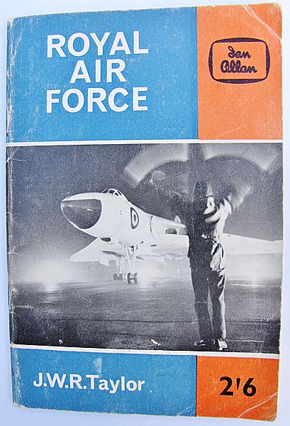 Royal Air Force and Army Air Corps A good used example of the 4th edition published in 1962 by Ian Allan and compiled by John W.R.Taylor. It is appropriate to be listing this copy now as it features a fine period picture of an Avro Vulcan on the cover and it is this month (October 2015) that Vulcan XH558 will be making her last ever flight, 62 years after her first! Opening the pages of this booklet is like going back in time. It goes into some detail of how the RAF and was organised over 50 years ago and details the aircraft they operated then. It covers the various commands, training, methods of entry, aircraft colours and a section on ranks, badges and insignia. This in turn leads onto a wealth of black and white photographs of the aircraft operated at that time and leading off with the Avro Vulcan which first flew on 3rd September 1953. It concludes with a tantalising glimpse of the Hawker P.1127 vertical take off strike fighter which went on to serve with distinction as the Harrier. Less satisfactory is a mention of the Vickers/English Electric TSR-2 bomber which 'will combine Mach 2 performance with the ability to operate from very short airstrips'.Or not. The back cover featured an advertisement for Airfix model aircraft which back in 1962 I was a prime customer! 64 pages of nostalgia at a very modest price!
