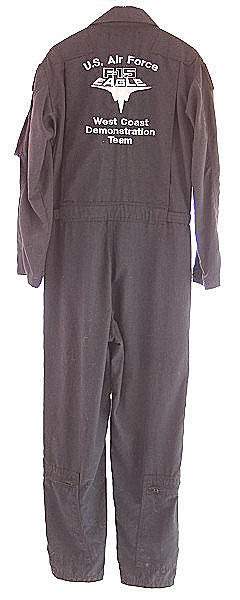 USAF F-15 Eagle Nomex Tunic - An extremely rare suit embroidered to the back with USAF, F-15 Eagle together with a picture of the aircraft. These were issued to the west coast demonstration team which is also embroidered on the back of the garment. The suit is commerically made by Gibson and Barnes and is a Normex IIIA. Size is 38S. Velcro pads to chest and arm but the badges are now absent. A highly collectable suit in excellent condition.