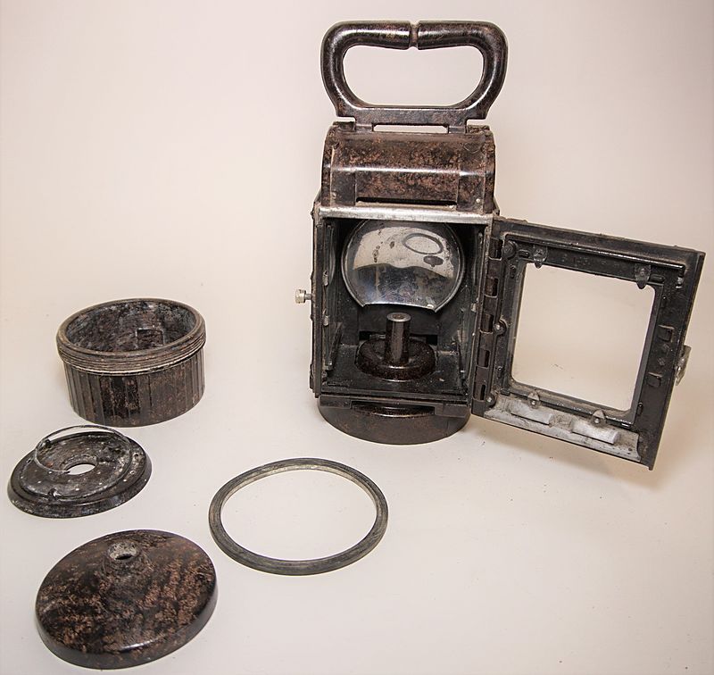 German Lantern by F.F.A. Schulze Berlin. - This came in with the WWII period bunker lantern which we have also listed today. This one however is made from a brass and our research indicated this is earlier and pre dates WWII and we estimate it to have been made during the 1930's but the basic concept and design is a very similar to the other model. This one is maker marked to the back plate F.F.A. Schulze, Berlin. D.R.P. 395351; this company is still in operation today. DRP stands for 'Deutsches Reich Patent' meaning the lamp was made for either the Military or the Government. Interestingly an identical example has recently been recovered from a WWII wreck off Libya. It seems this pattern of lamp was issued to a wide variety of users including Reichsbahn, Wehrmacht, and Reichsmarine. It also appears the design dates back to 1927 and was clearly still in use in WWII.