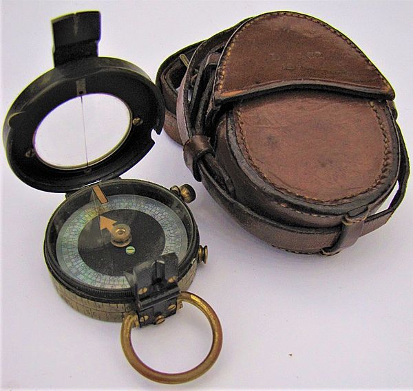 This example is in excellent issued condition. It is engrave 'B-L Made in Switzerland' on the base with serial number 27599 and a further nos 22637 stamped inside the lid. The base also carries a War department property mark arrow and the instrument is dated 1915 and it also retains its original anti slip ring which is often now missing from these compasses. It has a magnifying prism fitted for precise angle calculation for accurate target engagement. Whilst we can't guarantee the accuracy of the instrument it appears to be in good working order despite the 102 years since leaving the B-L factory and serving through at least one world war!