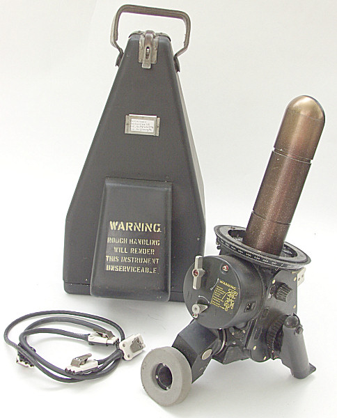 | RAF Periscoptic Sextant Mk IIA, model no. 6B/434-3796 - This example comes complete with a fitted transit case, appears to date from 1961 and was manufactured by Kelvin Hughes. Complete with cables. These instruments carried a 3 volt system for the lamp and a 24 volt system for the heater. They were used on pressurised aircraft such as the RAF V Bomber Force and enabled the navigator to establish the aircraft's true position when other navigation aids were unavailable. In good issued condition although we cannot guarantee the instrument is in working order or air worthy! Case measures 18" (46 cm)