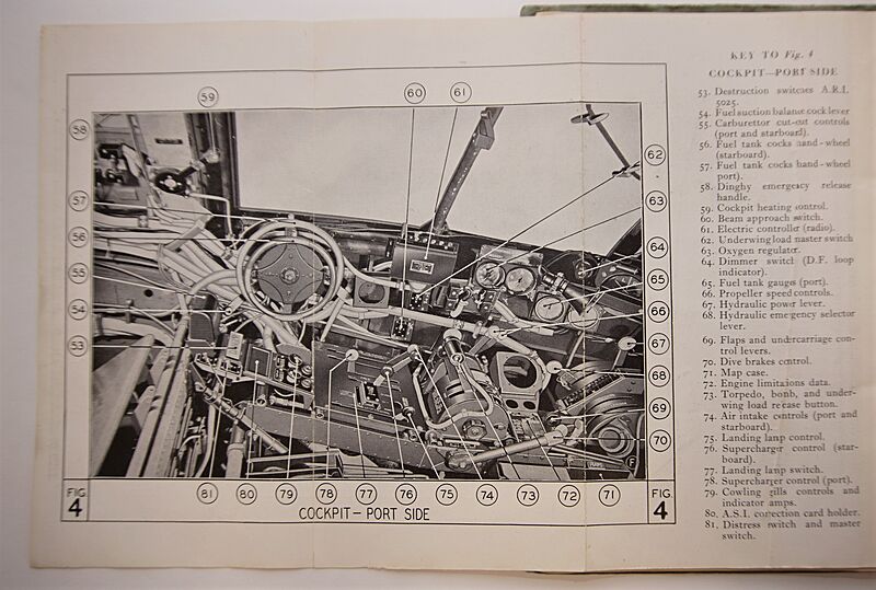 This booklet contains 46 pages detailing a vast amount of information, including a general description of the aircrafts operating systems and controls in Part 1. Part II deals with handling, part III operating data for the Merlin engines, whilst Part IV explains what to do in emergencies. Part V then covers supplementary notes for the Flight Engineer and concludes with part VI which contains superb pull-out diagrams/photos illustrating the pilots instrument panel, the port side of the cockpit, the flight Engineers panel and diagrams of the fuel system. The booklet remains in remarkably good issued condition and with just minor service wear and age related staining to the front and back covers and rust to the staples. These original examples are becoming increasingly hard to find now and this one would sit happily in any RAF related collection. If any visitors to the site can help identify Pilot Officer Roeder please get in touch and we will add to our description.