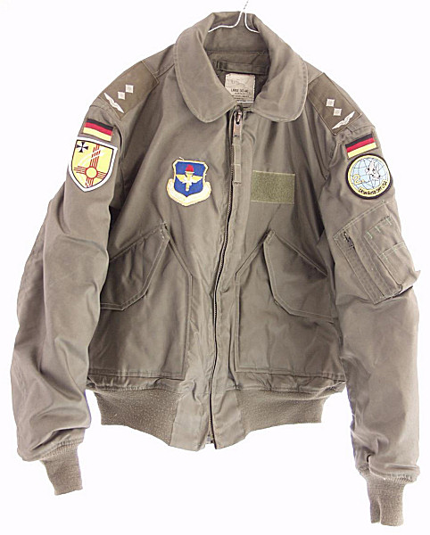 Jacket Flyers CWU-45/P - With German national flags and rank tabs to shoulders and finished in olive green aramid polymide. Badge to right breast Air Training Command and further squadron badges to right and left arms. The jacket is manufactured by Isratex Inc. The label is marked large to fit chest size 42-44" (107-112 cm).