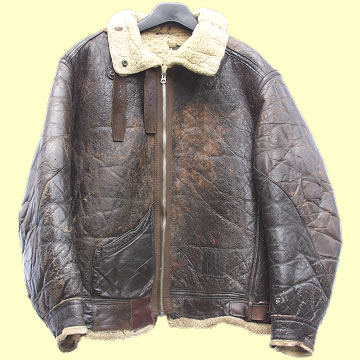 USAAF B3 Shearling Flying Jacket - WWII, lined, c.1943, single right hand pocket, waist straps, contrasting leather on upper arms. Chest size 42" (107 cm). This jacket is about as good as they come - it has a particularly nice patina. It's the best example of the B3 that we've had.