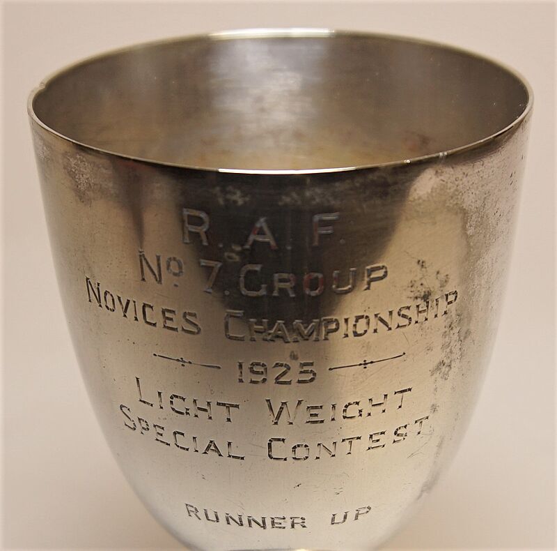 RAF No 7 Group Novices Boxing Championship Cup 1925 - No. 7 Group was created on the day that the RAF officially came into being on 1st April 1918 by renaming of the Royal Flying Corps 'Southern Training Brigade'. Initially the Group was subordinate to No. 2 Area and on 8 August the designation "Training" was added making the Group's new title 'No. 7 (Training) Group'. With the post war reductions, the Group was disbanded on 16th Aug 1919 but with military logic was reformed the following month, when South-Western Area was downgraded to group status. On 1st April 1920, the Group was transferred to Inland Area's control but was disbanded for the second time on 12th April 1926. Following the outbreak of the Second World War, the Group was reformed on 15th July 1940 as No. 7 (Operational Training) Group, under Bomber Command control.