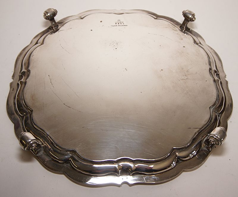 WAAF Officers Mess Presentation Tray RAF BC HQ - sadly the history with this one has been lost down the line. All we know if was presents to Joyce by her colleagues in the Officers Mess during the dark days of the war and is dated 9 August 1941. Joyce was clearly stationed at HQ RAF Bomber Command at the time but that is all we have to go on. The reverse gives us no more clues other than it is made of plate and silver soldered. The tray would be equally useful today and is in good condition with just minor marks associated with its 78 years of use. Lets hope 'Joyce ' appreciated the gift. Measures 10" diameter (26 cm).