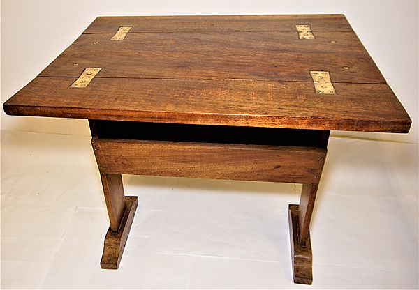 Vintage Mahogany Folding Yacht Table - We have owned and used this little table ourselves for close on 20 years but a new design scheme forces us to reluctantly offer for rehomeing. Whilst its origins are unknown it probably originally served on a yacht or launch where space below decks was at a premium. Our picture shows the top in the extended position and this gives a surface area of 29" x22.75" (74 cm x 58 cm); when the top leaves are closed the top dimensions reduce to a modest 29" x 11.5" (74 cm x 29 cm).In the folded position the top also has lips on either side to prevent items stored on top falling off during passage. It stands 25" high (64 cm) in the opened position.
