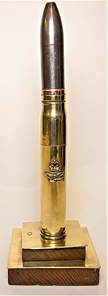 | RAF Trench Art 20 MM Shell Case Trench Art Lighter - Another fine example from the small collection we have just purchased. This one is free standing and whilst inert appears never to have been fired. The head stamp is clearly visible and is embossed 'BBC 1941 20 MM' Online research throws up some confusion over the manufacturer. Some chat rooms indicate this was made by the British manufacturer 'Barking Brassware Company', who apparently only made ammunition for the 20mm Hispano, so seems to fit the bill. Others state it was made by the 'Bridgeport Brass Company of Bridgeport, Connecticut, USA', who also manufactured 20mm Hispano-Suiza cartridges. Seeing the items clear RAF origins we are inclined to think this is from the British Company but stand to be corrected by any 'armchair experts' out there! The Hispano-Suiza 20 MM HS-404 equipped virtually every British fighter aircraft during WWII including later Mks of the Spitfire, Hurricane, Typhoon, Tempest, Mosquito, Whirlwind, Beaufighter, P38 Lightning and many more. After some early teething troubles it proved to be an extremely effective weapon in both he air to air and ground strafing roles.