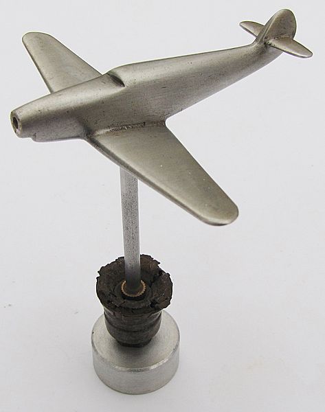| De Havilland DH88 Comet Racer Trench Art Model - A fine example mounted on a sectioned alloy cylinder converted into an ashtray. The de Havilland DH.88 Comet was a twin-engine British aircraft designed for the 1934 MacRobertson Air Race. The type set many aviation records during the race and afterwards served as a pioneer mail plane. The modern features and clean lines of the DH.88, especially in the striking colours of Grosvenor House, the race winner, make it a true design classic. Our model, fashioned from aircraft alloy lacks propellers but this helps create the impression it is really in flight. The cylinder ashtray is 5.25" diameter (13 cm). The model stands 6" high (15 cm) and carries a wingspan of 5.5" (14 cm.) Purchased from the same collection as the Spitfire model we have just listed.