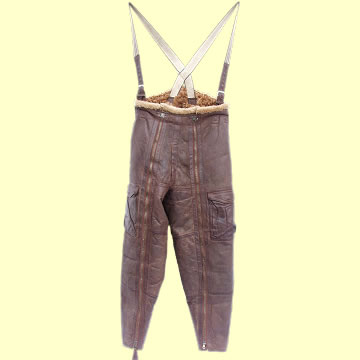 | RAF Irvin Flying Trousers with 149 Squadron provenance - In RAF parlance, thermally insulated trousers size 4 Irvin with stores ref. 22C/328. These are an excellent original example with an Air Ministry marked label confirming the original owner was called Nunn, service no. 1378662. Sgt Nunn flew with 149 squadron and was lost on a raid on Berlin on 1/2 March 1943. His aircraft Sterling 111 OJ-W was coned by searchlights and then attacked by fighters and Nunn was injured. Hit again by flak crossing the French coast crew members opened his chute before exiting the aircraft but he did not survive and is buried in the Canadian War Cemetery at Dieppe with his skipper F/L Richman and Sgt Croft. The leather is in excellent original condition with both zips functioning well and the trousers come complete with fitted braces. The fur lining is in equally good condition and other than minor damage to the left knee pocket, they are hard to fault.
