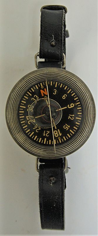 | Luftwaffe AK39 Armbandkompass with extension strap - The AK39 Wrist Compass was first introduced in 1939 for use by German aircrew for navigation purposes if forced to abandon their aircraft. Whilst designed for wrist use, as its name implies, but many period photographs exist of it attached to Schwimmweste, or other bits of flight equipment. The AK39 came in two variants and this example is the first specification; the very early production models had a solid black bezel that was followed by a translucent bezel as here.