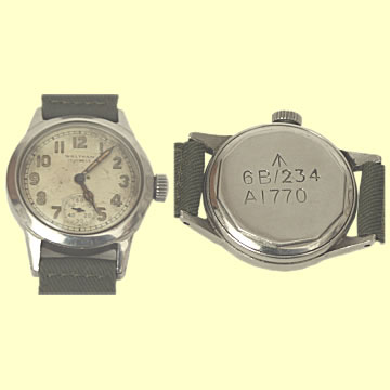 | RAF Aircrew Wrist Watch - WWII, by Waltham Ref 6B/234. This watch has a 6/0B 17 jewel movement - it would have been a substitute watch issued in place of an original. Correct specification replacement strap fitted. Excellent running order.
