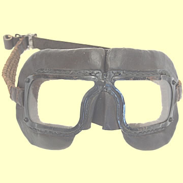 | Mk III Flying Goggles - nice clear lenses. Leather face mask in good shape, original back strap stamped "R.C.A.F. 22/397 C.C.B. 1942". This pattern was introduced in 1935, issued to the RAF and RCAF, it is synonymous with the Battle of Britain.