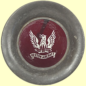 | Heston Aircraft Company Presentation Dish - Manufactured in pewter with etched red glass base with the Heston Aircraft Company logo. They were based at Heston Airport near Hounslow in the 1930's and would guess this item dates from this period. Some age wear, but over all very good condition. 3.5 cm diameter.