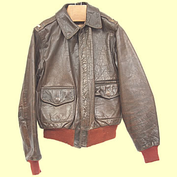 | A-2 Flight Jacket - WWII Issue with completely original everything! Made by Aero Leather Clothing of Beacon NY. Marked 38R (97 cm), Talon zips fitted and the distinctive red/rust knitted waist and cuff bands, associated with this manufacturer. The lining is also original, but is showing some wear. No rips or tears to the leather. A great vintage jacket in the sort of condition you dream about!