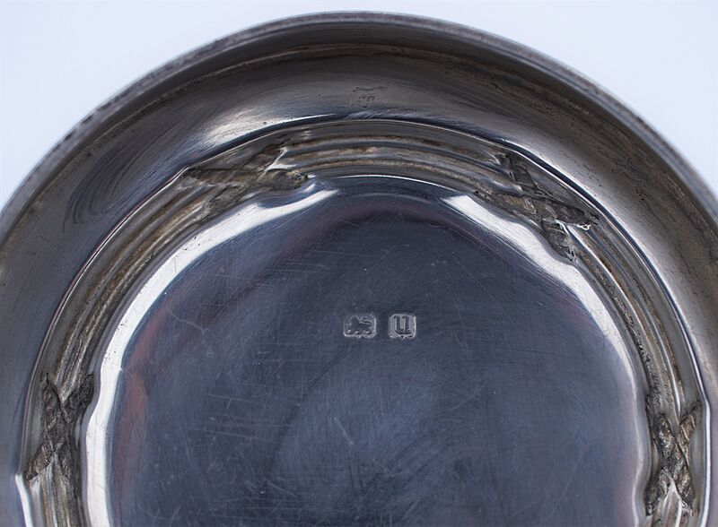 We assume this inkwell was purchased, engraved and presented to the Royal Navy Staff College by this most illustrious group of Officers, on the completion of their course in 1924. It would have been held in their silver collection and probably dispersed when the college finally closed its doors in 1998. I have owned it since 2005 but now is the time for a new custodian to take on this unique piece of military silverware. As mentioned it shows some age related dings and bangs and the hinge exhibits a little play and the hinge rod may be a replacement. A removeable ceramic inkwell insert is fitted in the interior recess. The silver marks on the lid remain crisp and clear but those on the capstan body are now hard to decipher, but are detailed on the attached photograph. The base retains the original leather cover that is in excellent condition and measures 5.25" diameter (c.13 cm) and it stands 2.5" high (6.5 cm). A unique and frankly museum quality piece of British military history.