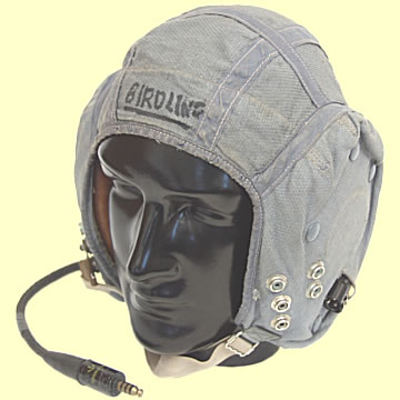 | RAF 'G' Type Cloth Flying Helmet - fitted with receivers and wiring loom. The helmet is a Size 3, dated 1959. Named on the front to "Birdling". Good issued condition.