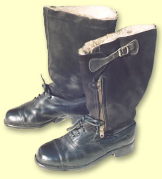 | Escape Boots - RAF, 1943 pattern 22c/917. The suede leg section was designed to be cut away if the owner was forced down in enemy territory. The remaining shoe section looked like civilian footwear to aid an escape undetected. This is a nice example in size 8 (42), slight damage to one zip and, like most escape boots, the secret knife is missing.