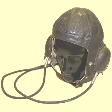 | Flying Helmet - RAF, 'B' Type, made by Stirling & Co. and dated 1939. Zip ear covers fitted with Gosport tubes.