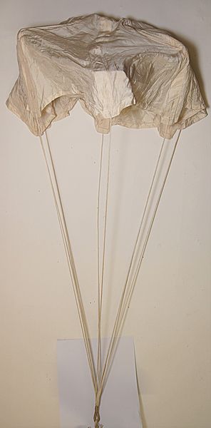 | WWII Luftwaffe drogue parachute - A first class example of a Luftwaffe drogue parachute or in the local vernacular "Hilfsschirm" or "help parachute" that would originally have been contained in either a pilot's seat or back pack type 'chute. Made of silk the diameter of the canopy is about 24" (61 cm) and retains all its original cords as shown. The end loop would have originally been attached to the top of the main canopy by a short length of cable and when the D ring was pulled would have exited first from the pack and be opened by the folded spring frame inside and so ensure the full canopy deploys with all possible speed. The edge of the drogue is fully stamped with a very crisp Luftwaffe eagle and below 2. Sturzkampfgruppen Kommando. Our research indicates this refers to a dive bomber Group, so could well relate to use by JU 87 Stuka aircrew. Alongside is a crisp 'BA 1761' stamp applied by the quality control department in the factory and standing for 'Betriebs Aufsicht' and below a clear production date of 11 July 1942. Adjoining this is a further stamp reading 315585 which is probably the production werk number. The canopy remains in good original condition with just minor age related marks but no damage. The spring mechanism still functions exactly as intended and all the lines are intact although the cable attachment is absent. Now becoming a scarce item and the perfect size to display withing a collection.