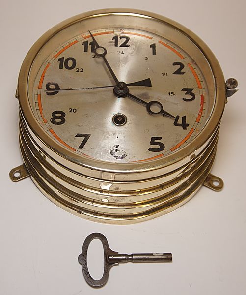 | Junghan's Radio Room Clock WWII - Another interesting ships clock we are listing today. This pattern was in use from 1939-1945 and served with both Kriegsmarine and Civilian vessels of the period. We have also seen similar examples issued to and used by the Bundeswehr post WWII but our understanding is these tended to be chrome plated whilst this example carries a brass case. We have found an identical example detailed in Ziggy Wesolowdki's excellent reference book on Military Timepieces and also in volume 3 of the book 'Kriegsmarine Uniforms and Traditions'.