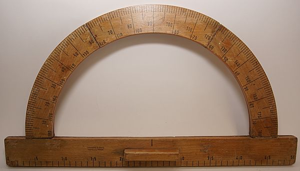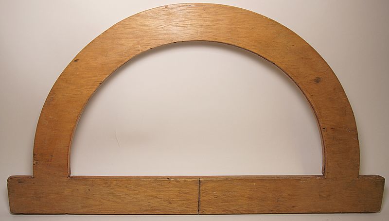 | Kriegsmarine Protractor - A very large instrument manufactured by Dennert & Pape of Hamburg-Altona and also stamped with a waffenampt and the code M 1V/1. Constructed from hardwood (possibly beach) with a scale from zero to 180 degrees on the curved section and 0-50 cm along the base. In generally very good issued condition with minor expansion in the timber at the joints. We would assume the instrument would have been used either at H. Q. for training purposes in the classroom or possibly for a crew briefing prior to an operation. We have only ever seen one other example and would represent an unusual addition to the specialist Kriegsmarine, Nautical or instrument collection. 19.75"x20.5"x10.75" (50 cm x 27 cm)