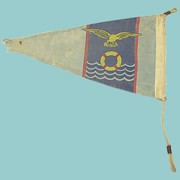 | Air Sea Rescue Launch Pennant - in flown condition. Features RAF Eagle with life ring and sea below, original cordage. Ex-museum display.